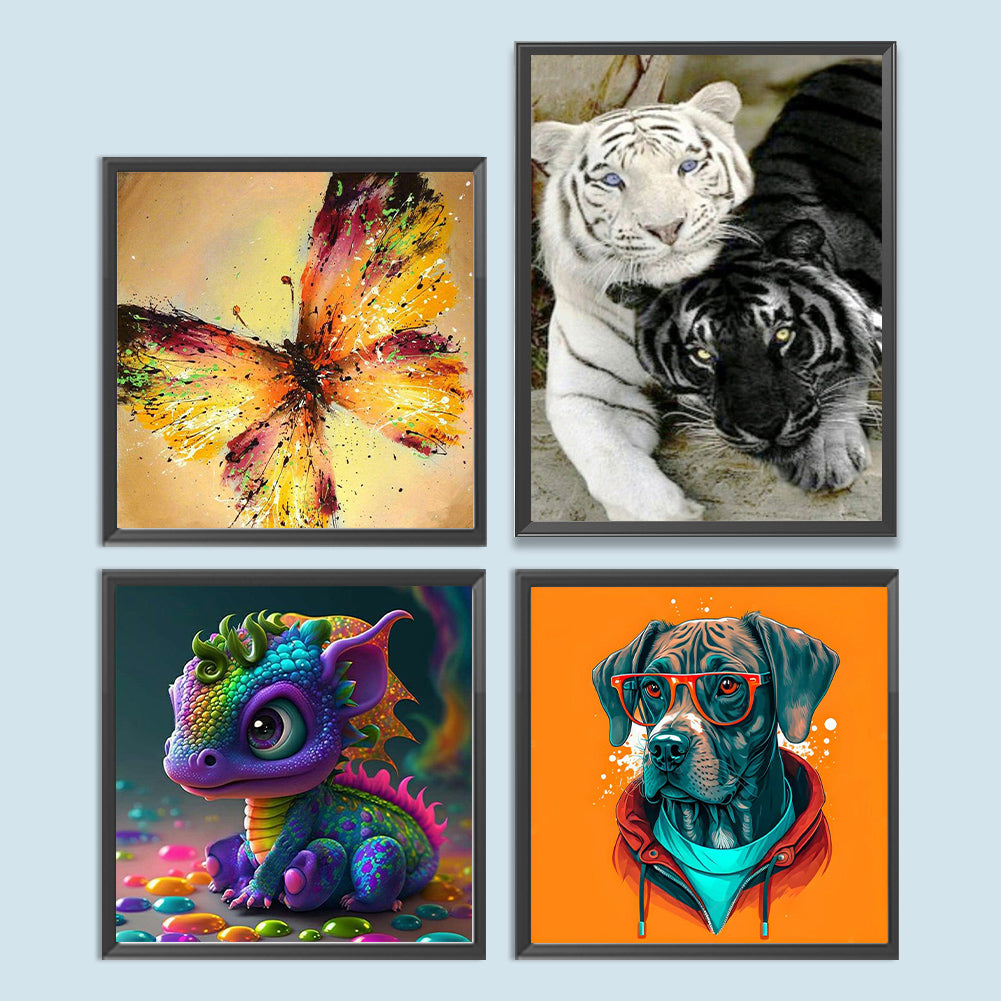 4pcs Round Diamond Painting Set - Animal series (30*40CM)