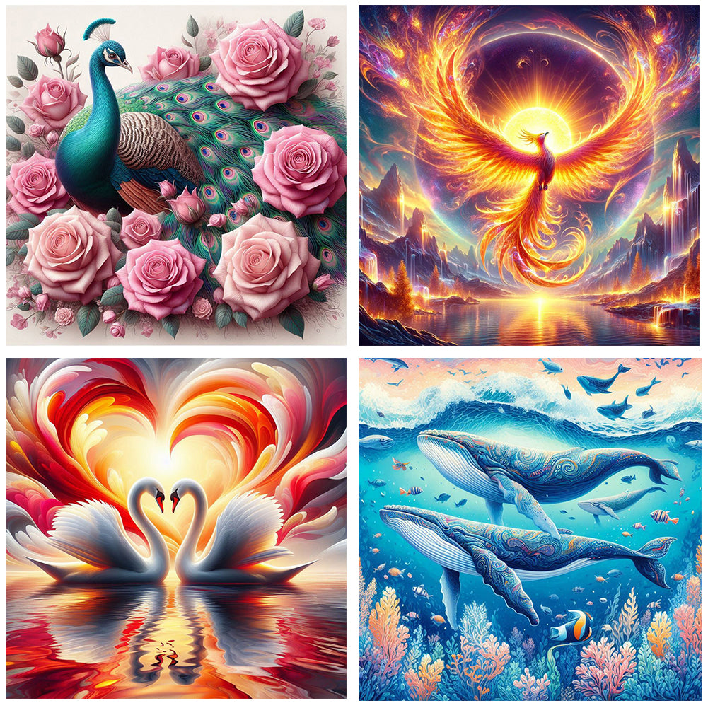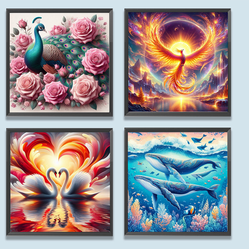 4pcs Round Diamond Painting Set - Animal series (40*40CM)