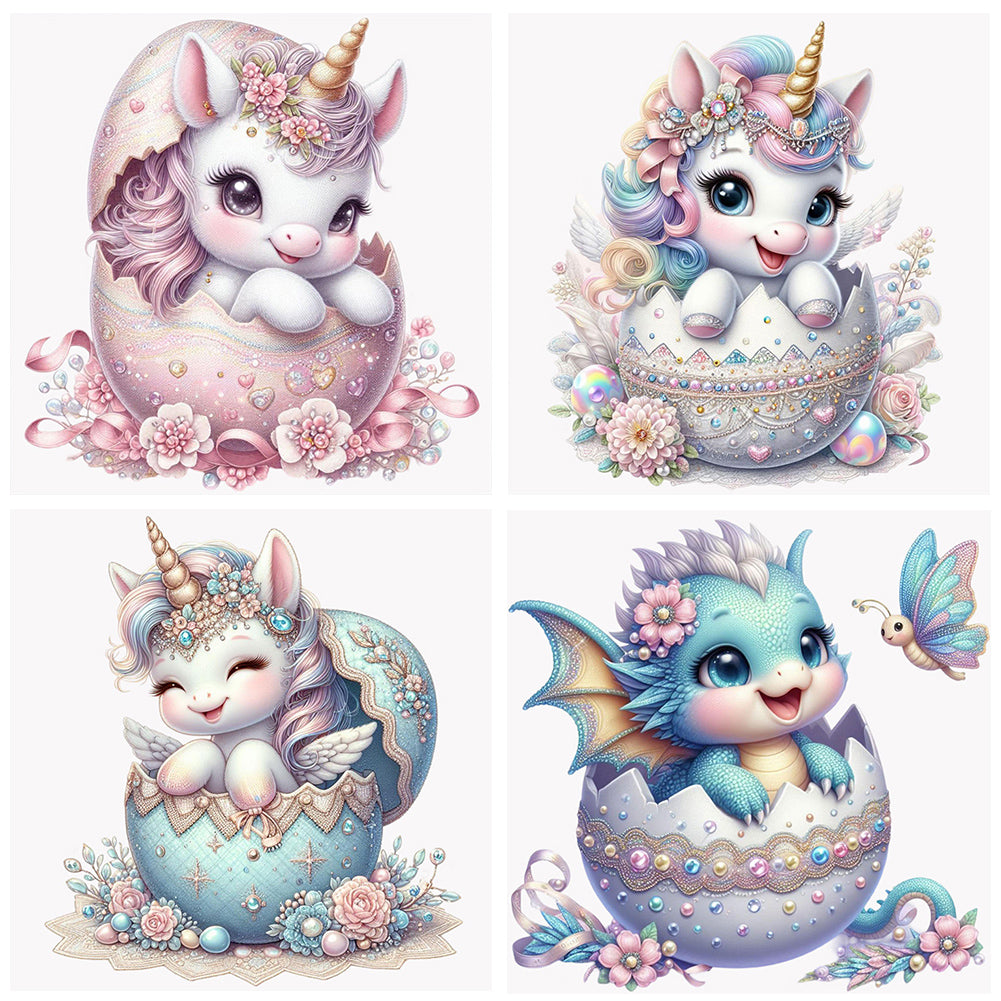 4pcs Round Diamond Painting Set - Gemstone dinosaur eggs (30*30CM)