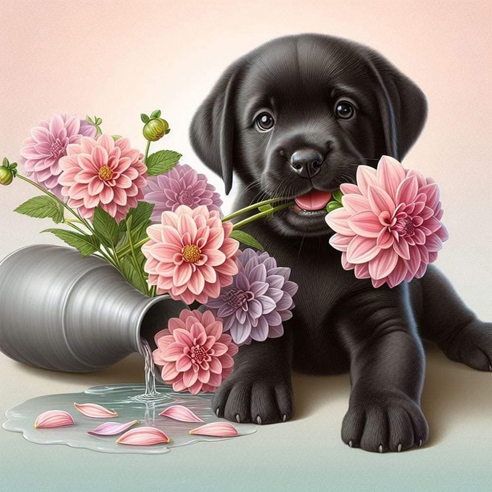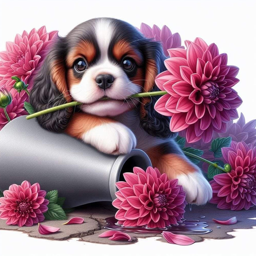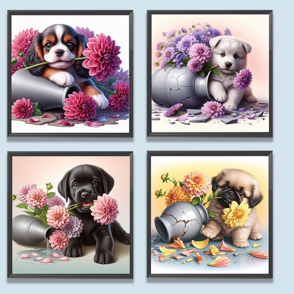 • Load image into Gallery viewer, 4pcsRound Diamond Painting Set - Flower puppy (30*30CM)