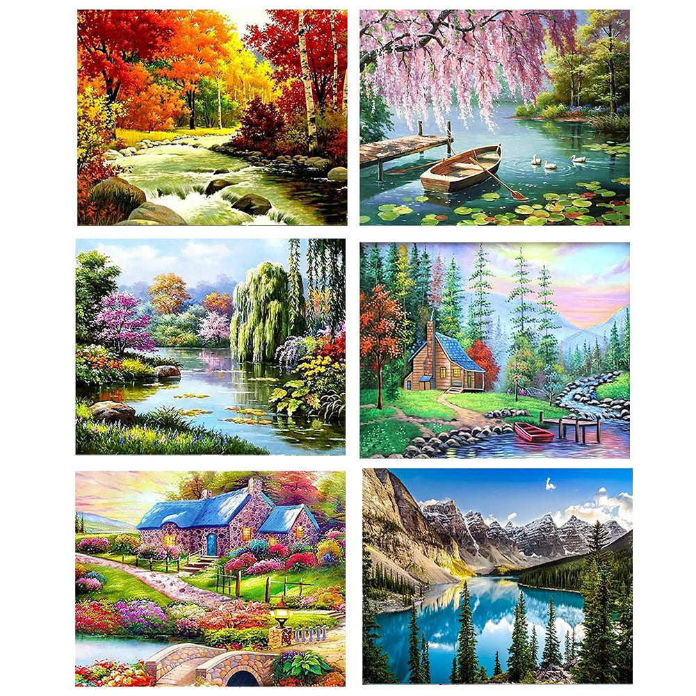6pcs Round Diamond Painting Set - Beautiful scenery (40*30CM)