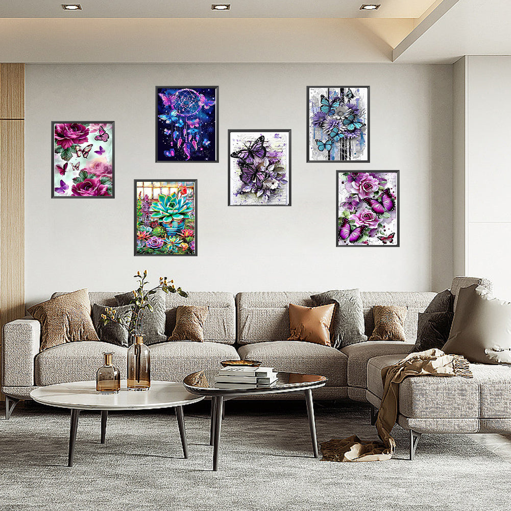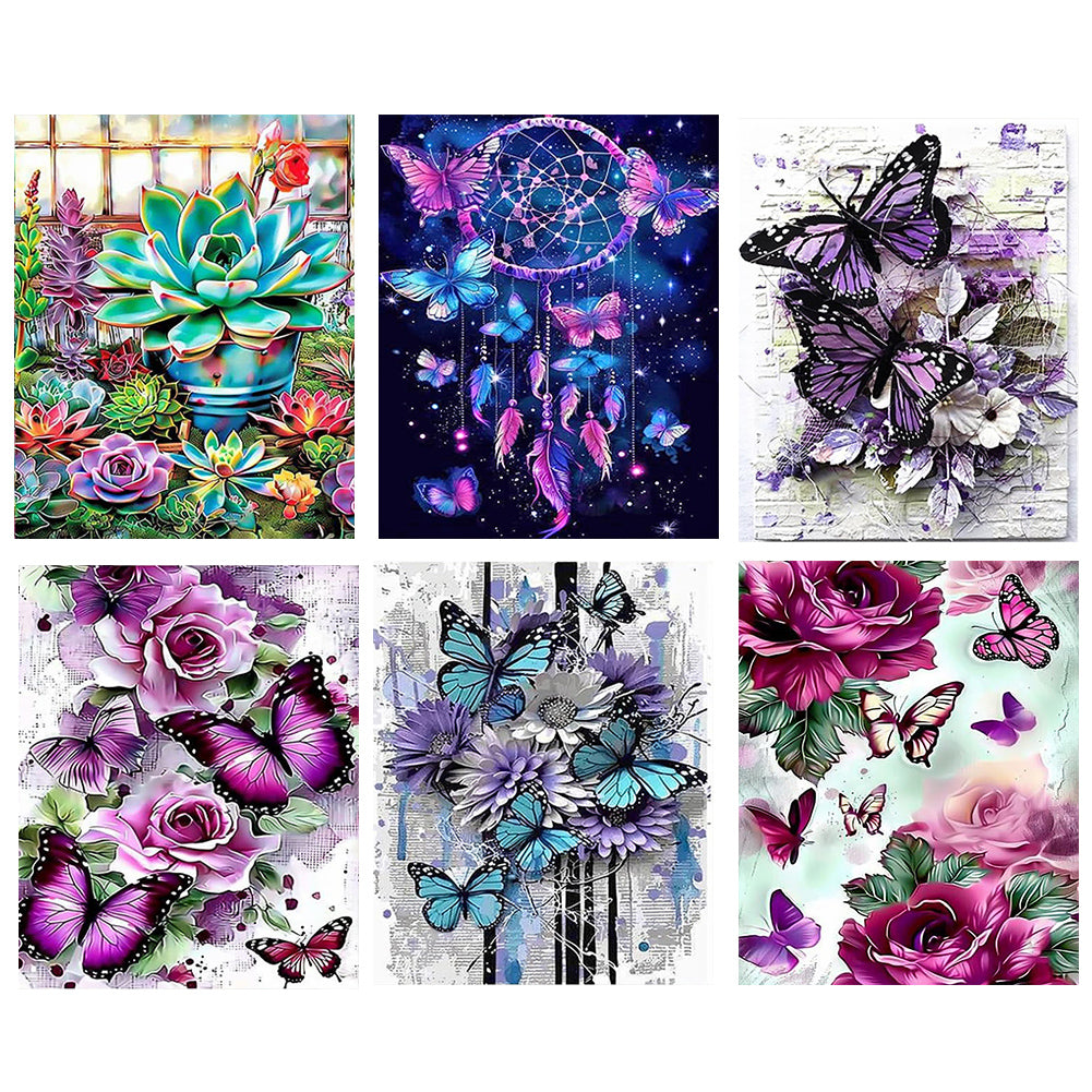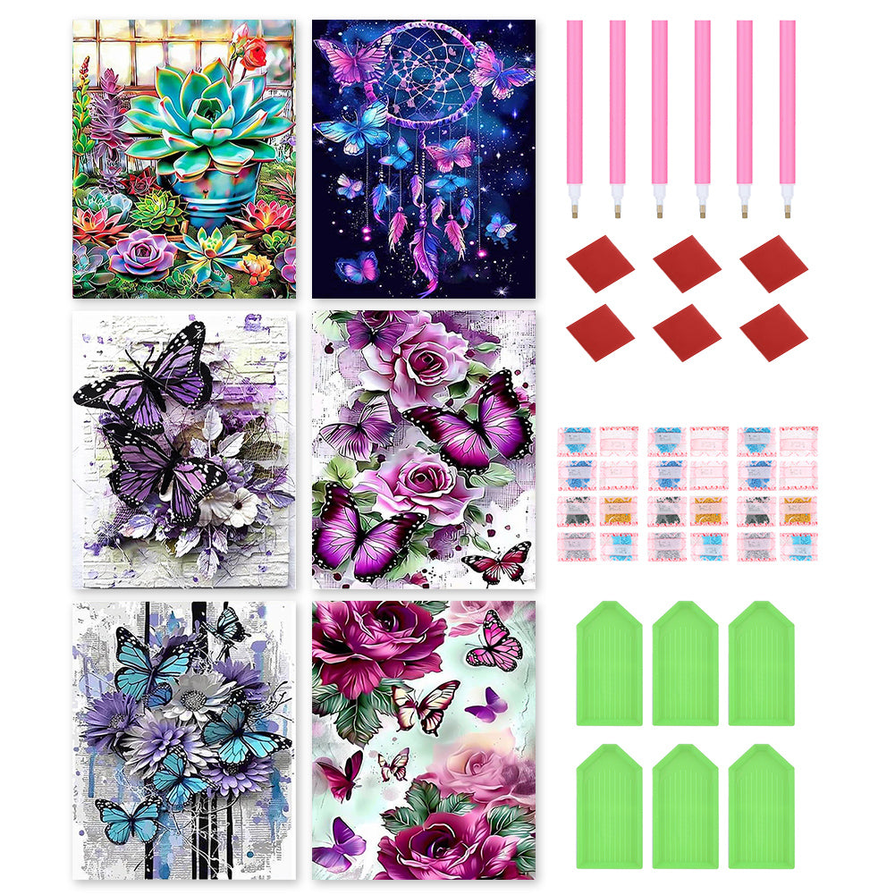 6pcs Round Diamond Painting Set - Flower butterfly (30*40CM)