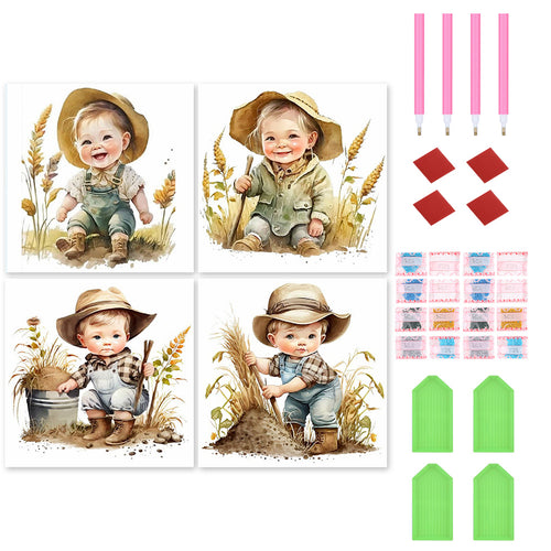 4pcs Diamond Painting Set - farm cowboy kid (30*30CM)
