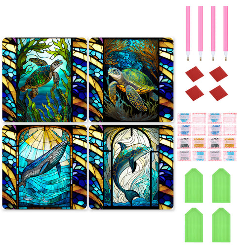 4pcs Diamond Painting Set - marine life glass painting (30*30CM)