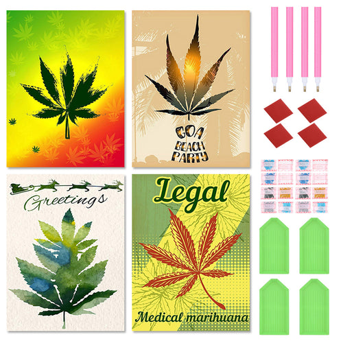 4pcs Diamond Painting Set - marijuana leaf glass painting (30*30CM)