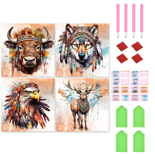 4pcs Diamond Painting Set - Indian style animals (30*30CM)