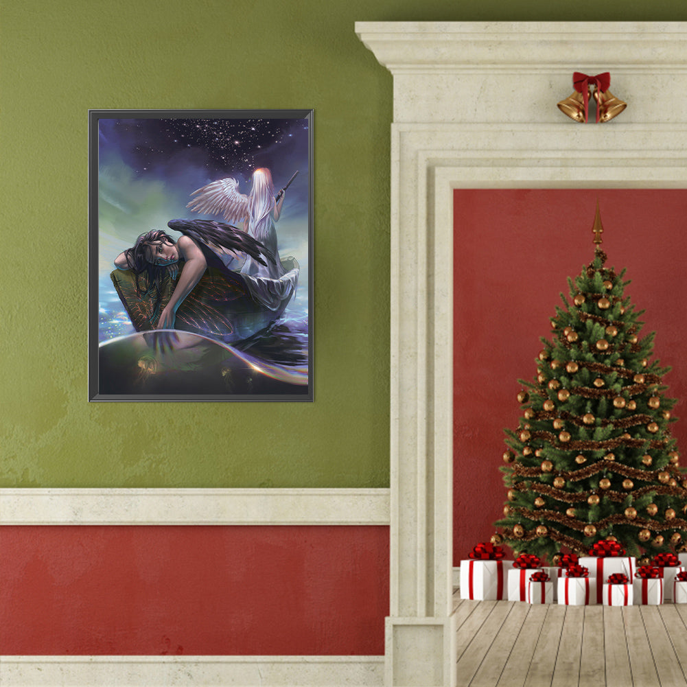 Diamond Painting - Full Round - black and white angel (40*50CM)