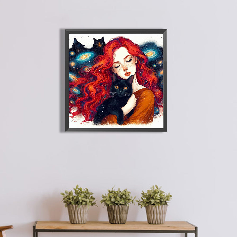 Diamond Painting - Full Round - Black cat and girl (40*40CM)