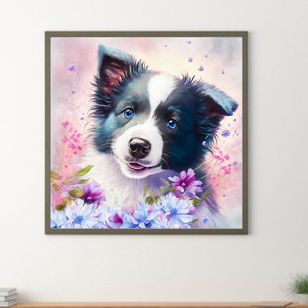 Diamond Painting - Full Round - Flowers and Shepherd Dog (30*30CM)