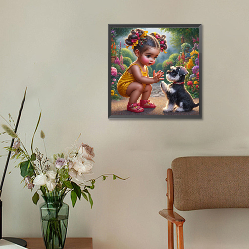 Diamond Painting - Full Round - Garden girl with puppy (30*30CM)