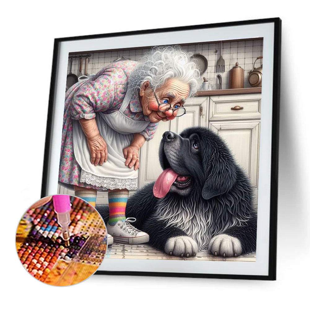 Diamond Painting - Full Round - Granny and dog (40*40CM)