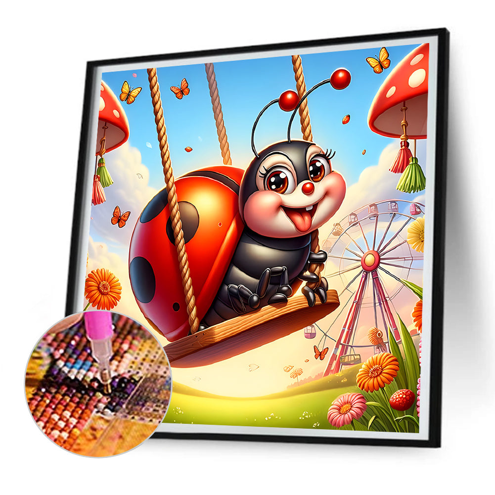 Diamond Painting - Full Round - Ladybug on a swing (30*30CM)