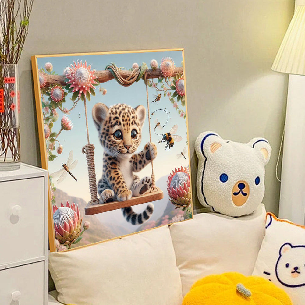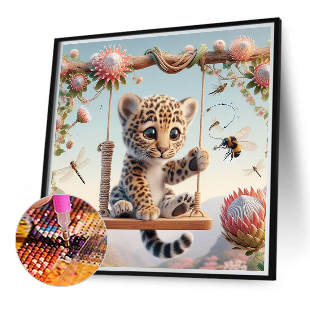 Diamond Painting - Full Round - Leopard on a swing (40*40CM)