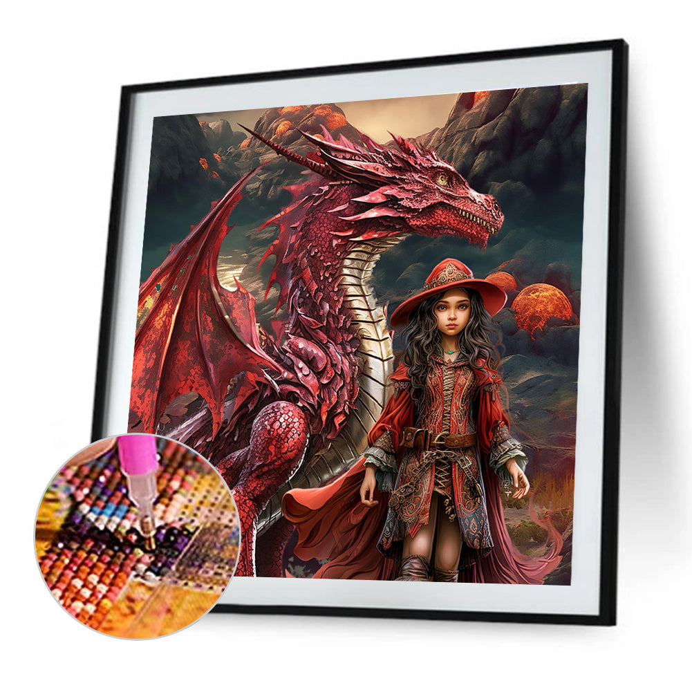 Diamond Painting - Full Round - Red dragon and girl (40*40CM)