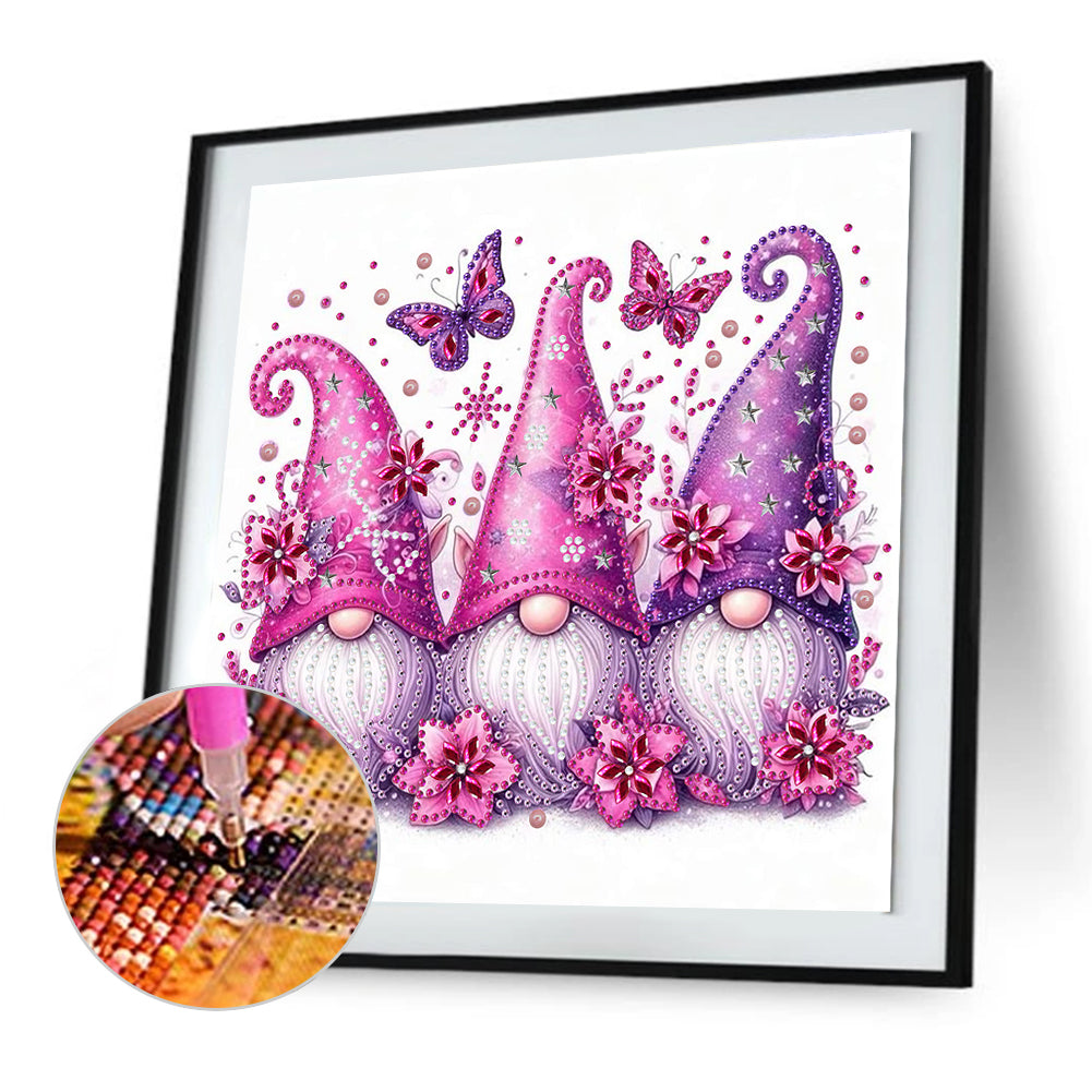 Diamond Painting - Partial Special Shaped - Purple butterfly gnome (30*30CM)