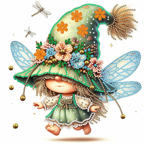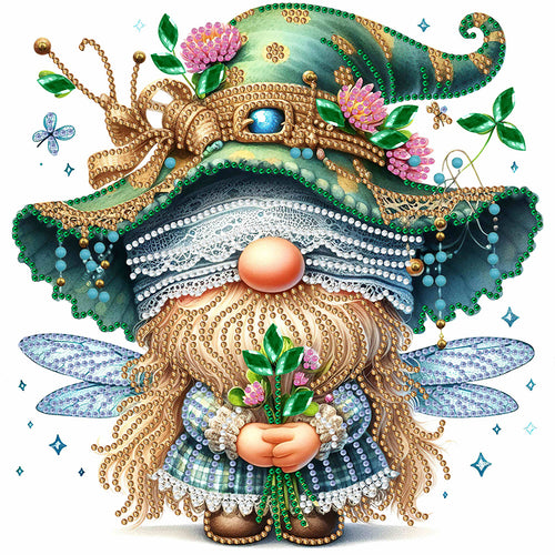 Diamond Painting - Partial Special Shaped - spring dragonfly gnome (30*30CM)