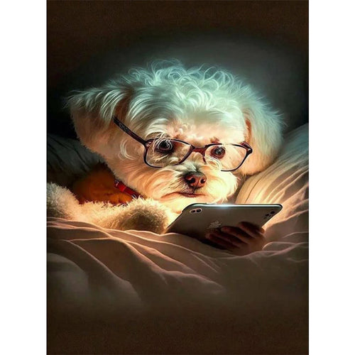 Diamond Painting - Full Round - reading puppy (45*60CM)