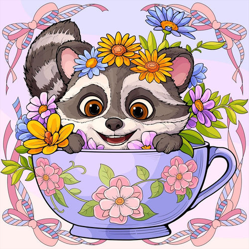 Diamond Painting - Full Round - Red panda in cup (40*40CM)