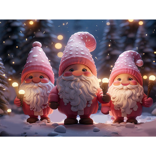 Diamond Painting - Full Round - Three Santa Clauses on the snow (30*30CM)