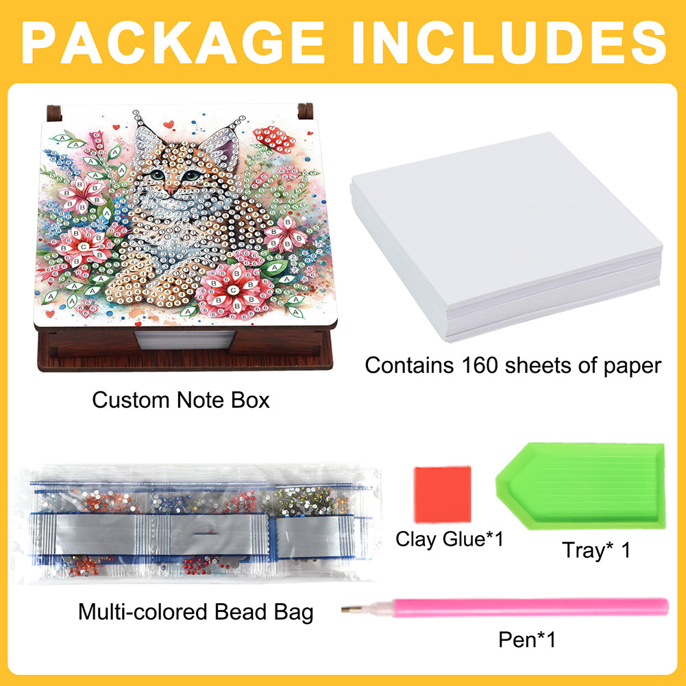 • Load image into Gallery viewer, 1pc Cat Pattern DIY Diamond Painting Kit Note Box 160 Sticky Notes Desktop Decor