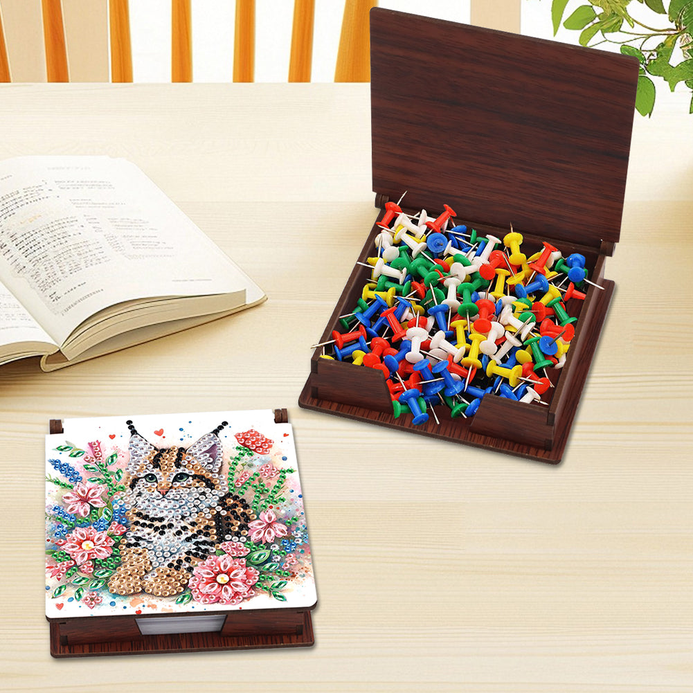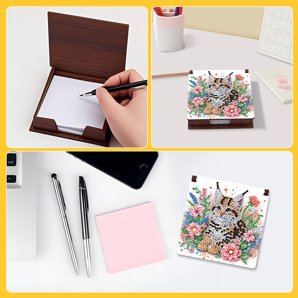 1pc Cat Pattern DIY Diamond Painting Kit Note Box 160 Sticky Notes Desktop Decor