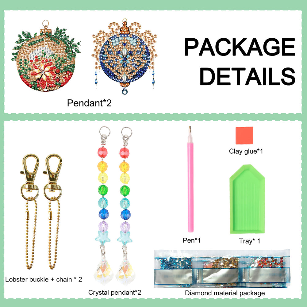 2PCS Suncatcher Diamond Painting Hanging Decor for Kid DIY Craft (Xmas Ball #10)
