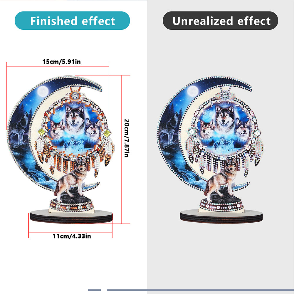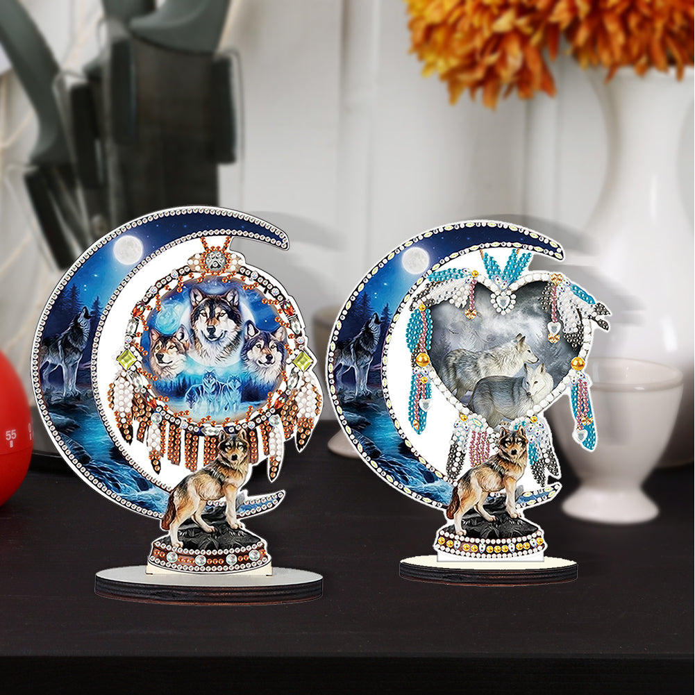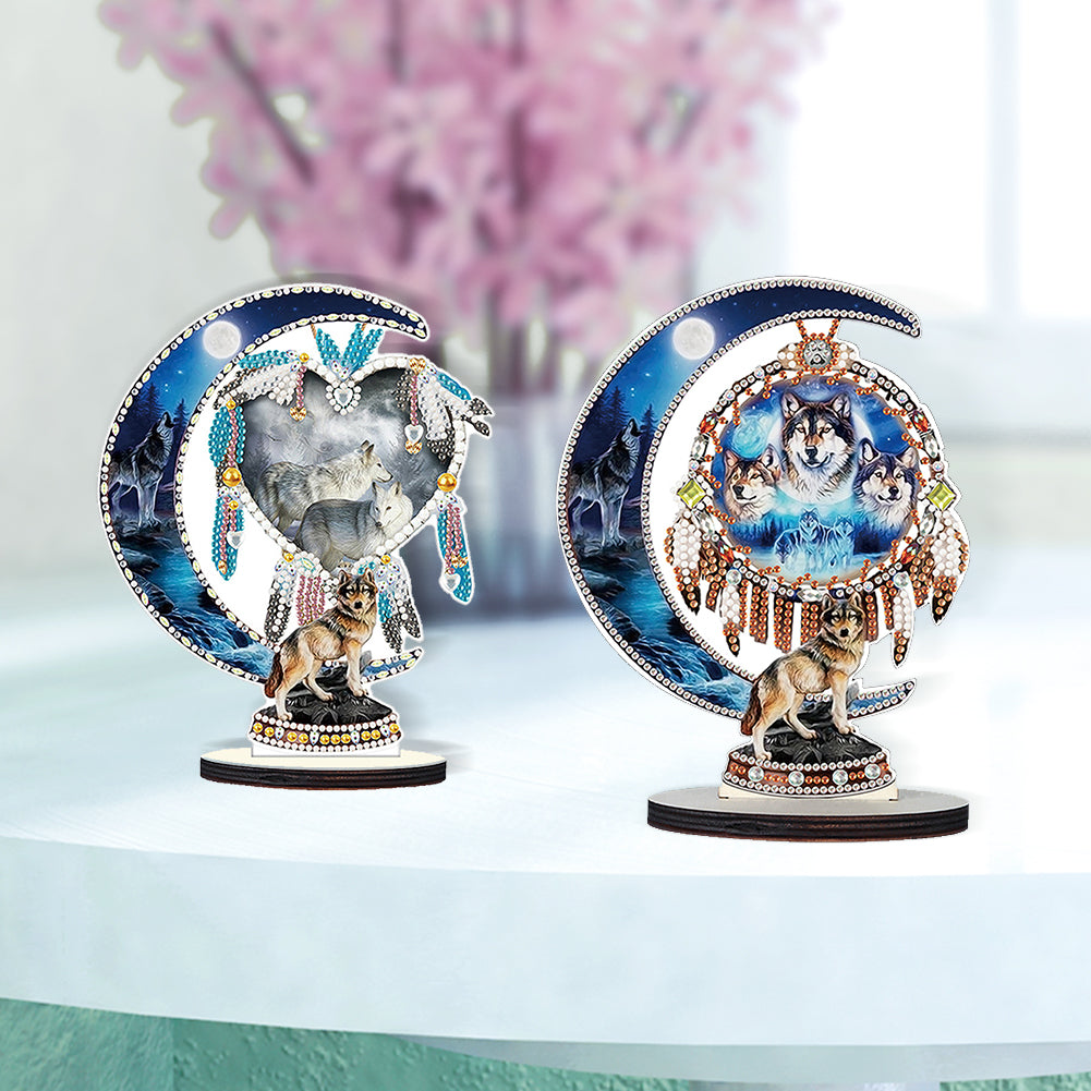 2PCS Table Top Diamond Painting Decor Wooden Dreamcatcher Wolf (#4)