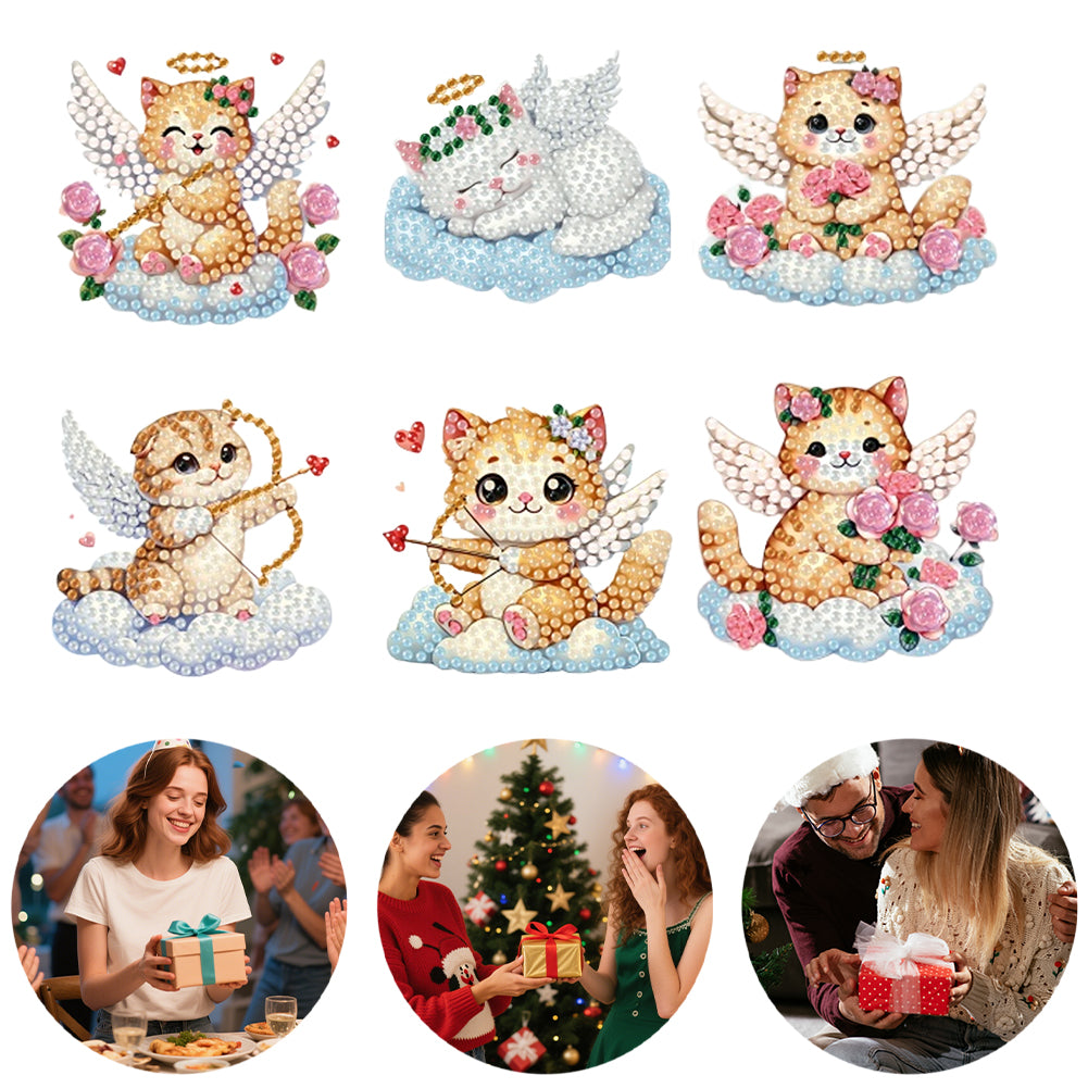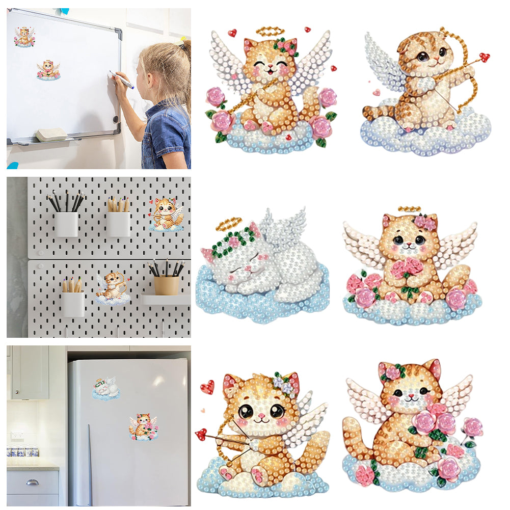 6Pcs Acrylic 2D Flat Cloud Cats Diamond Painting Fridge Magnet for Fridge