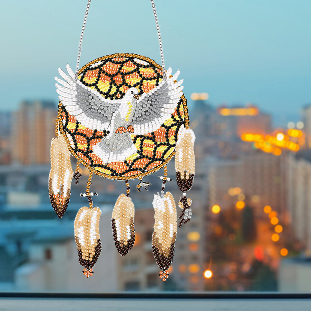 Acrylic Dove Dreamcatcher Single-Sided Diamond Painting Hanging Decor 13x20cm