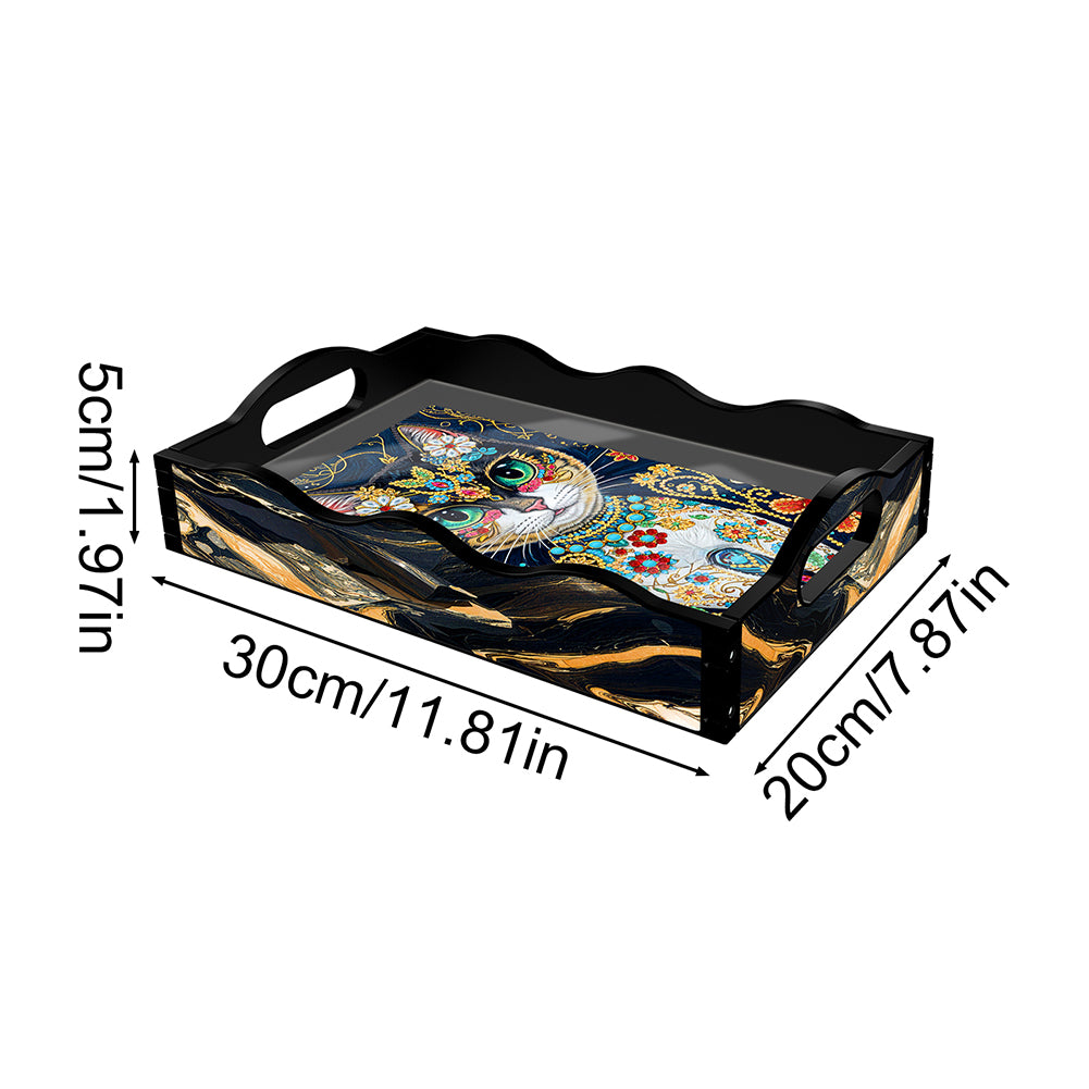 Acrylic Rich Cat 5D Diamond Painting Serving Tray Art Craft for Home Decoration