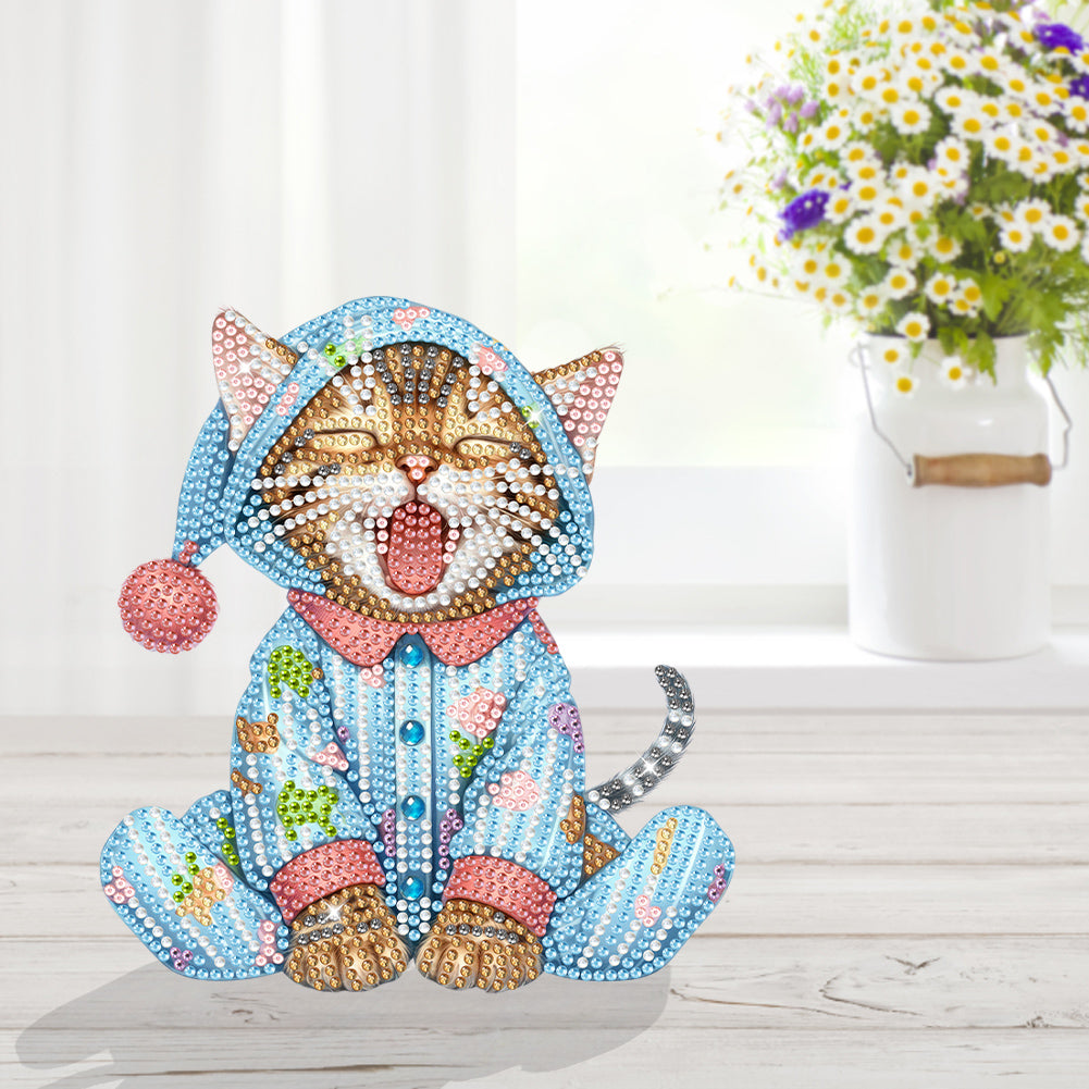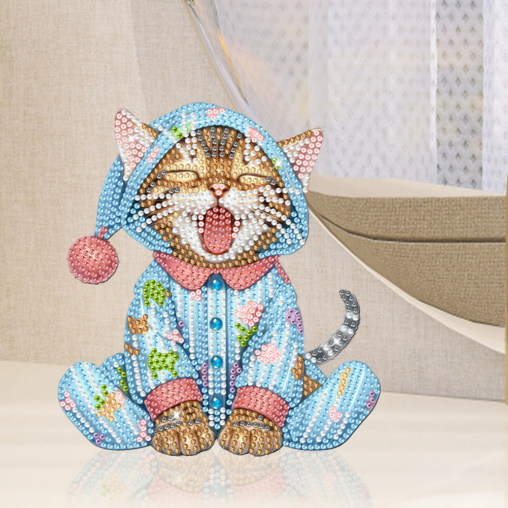 Acrylic Shaking Head Yawning Cat DIY Diamond Painting Desktop Ornaments