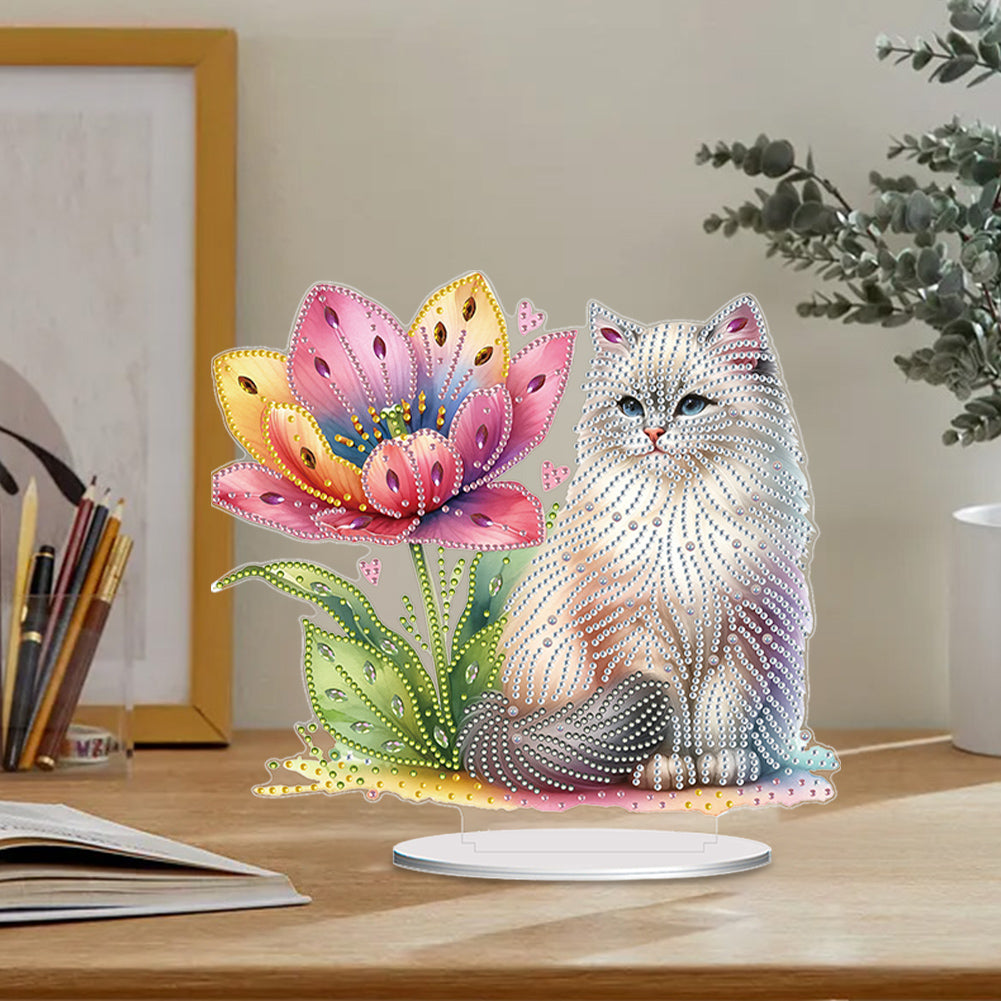 Acrylic Special Shaped Flower Cat Diamond Painting Desktop Decorations for Home