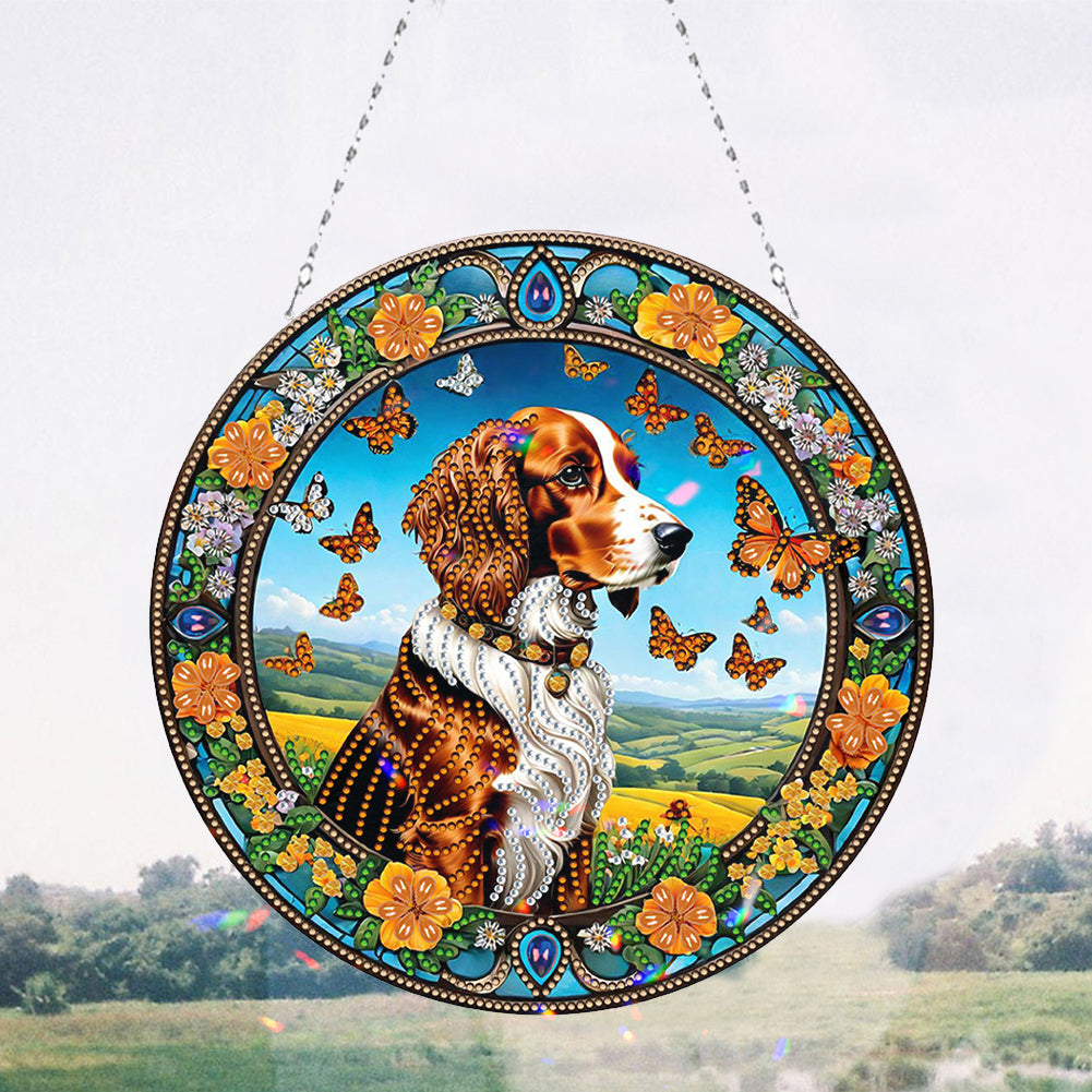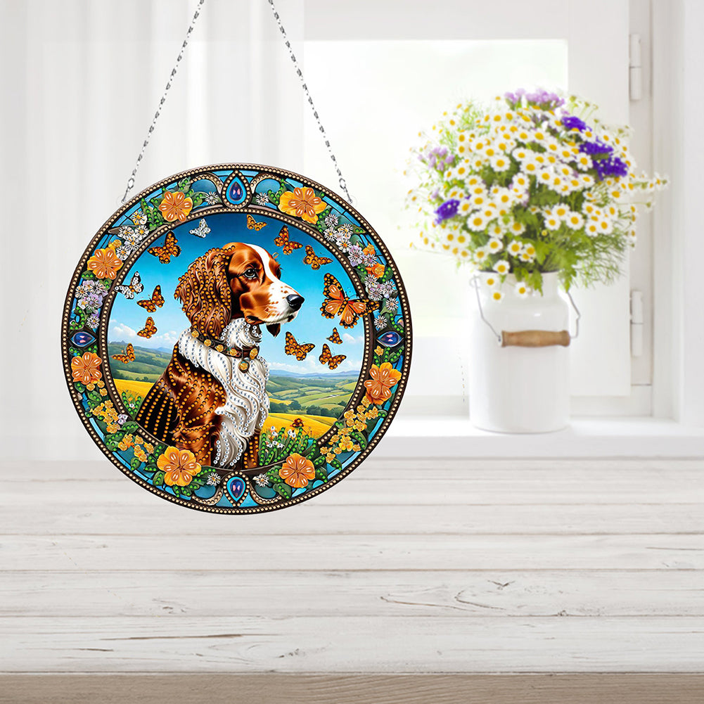 Cat Dog Double Sided Effect Diamond Painting Hanging Pendant Home Windows Decor