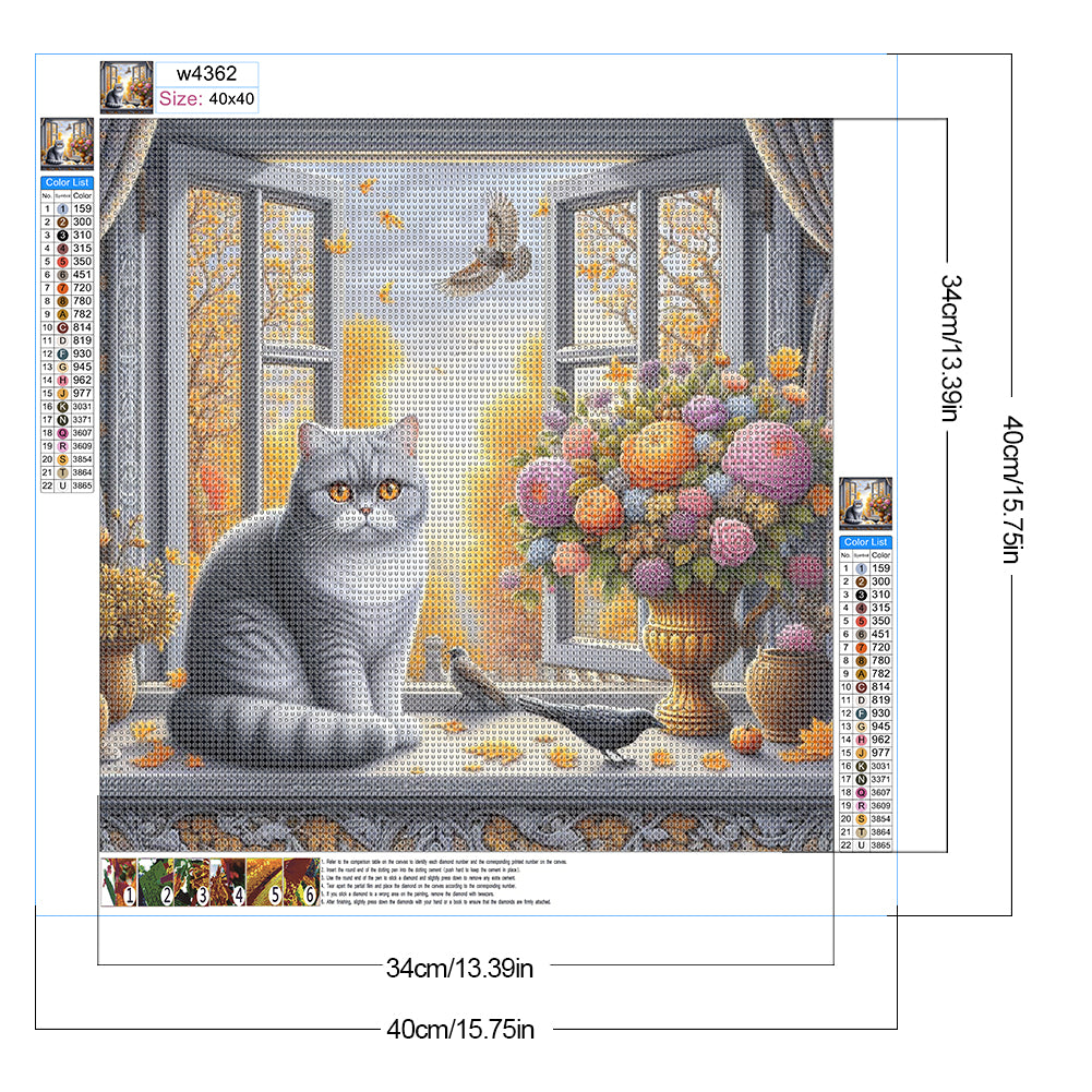 Diamond Painting - Full Round - Autumn and cat outside the window (40*40CM)