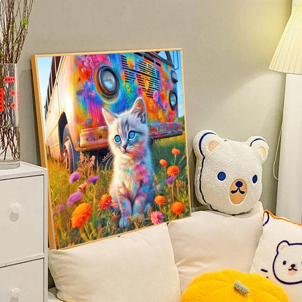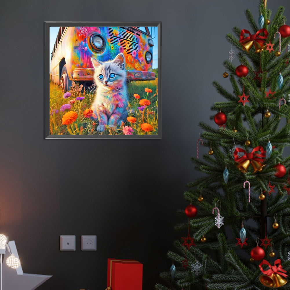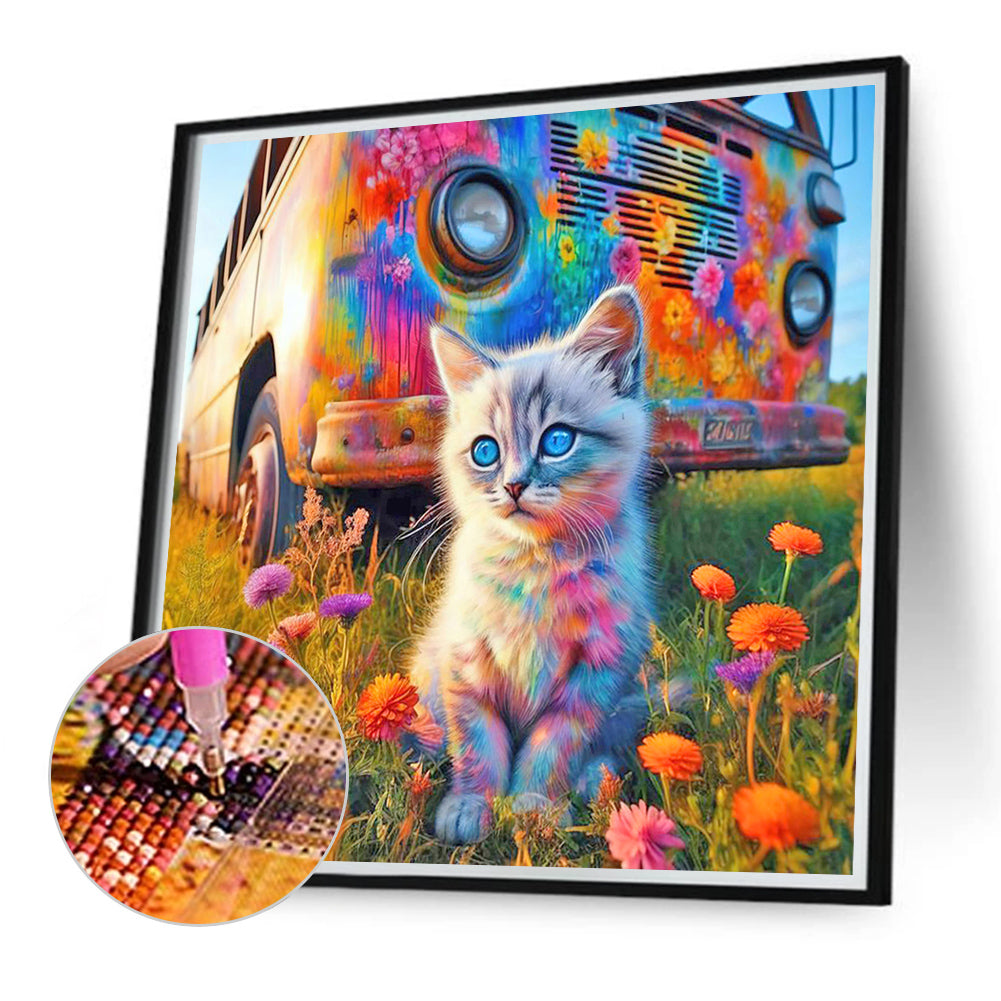 Diamond Painting - Full Round - Cat Flower Bush and Bus (40*40CM)
