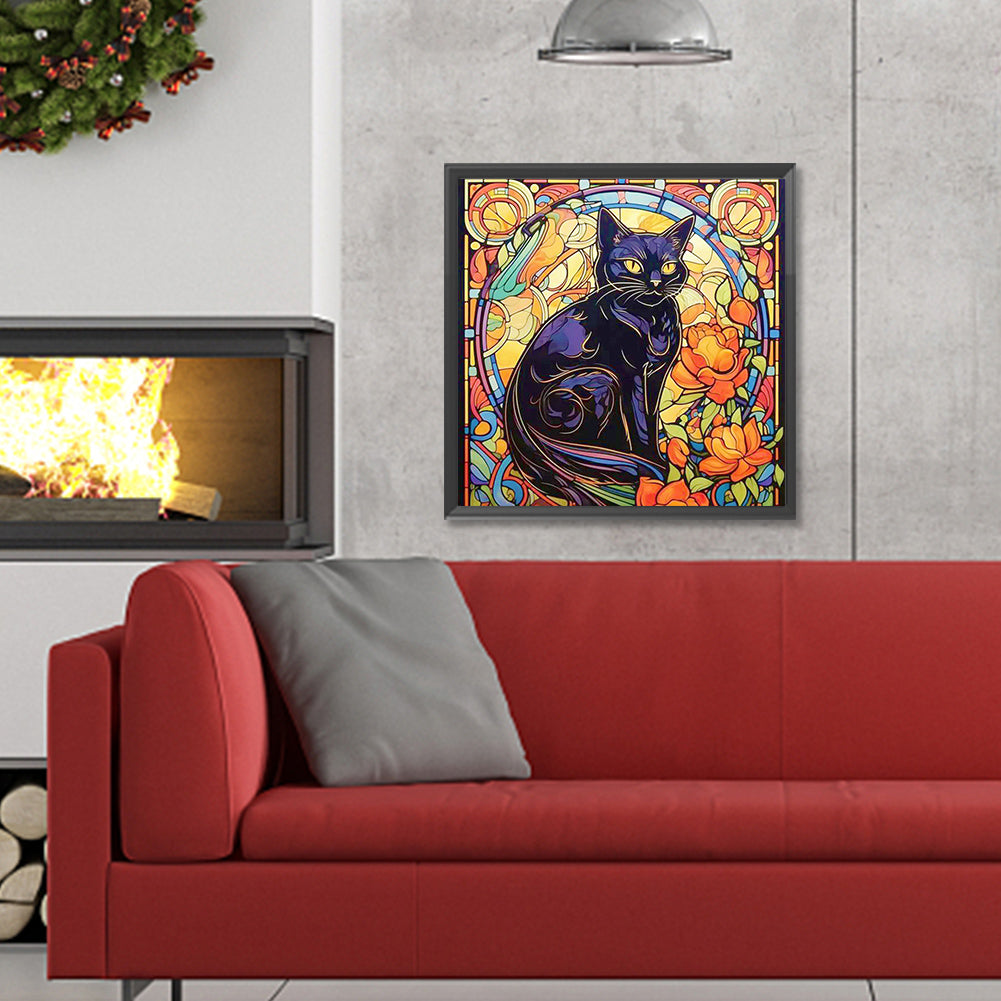 Diamond Painting - Full Round - glass art black cat (30*30CM)