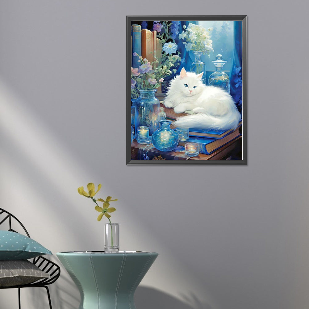 Diamond Painting - Full Round - lazy white cat (40*50CM)