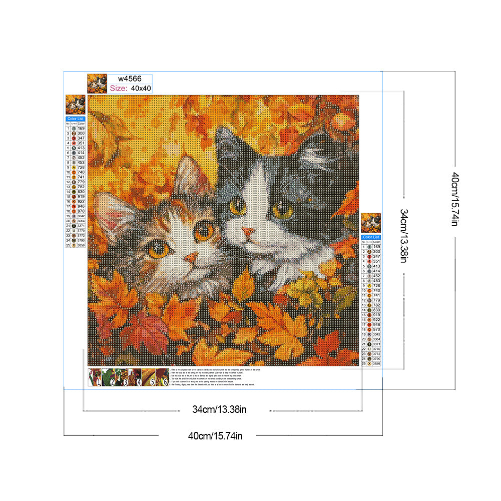 Diamond Painting - Full Round - Maple Leaf Pile Double Cat (40*40CM)