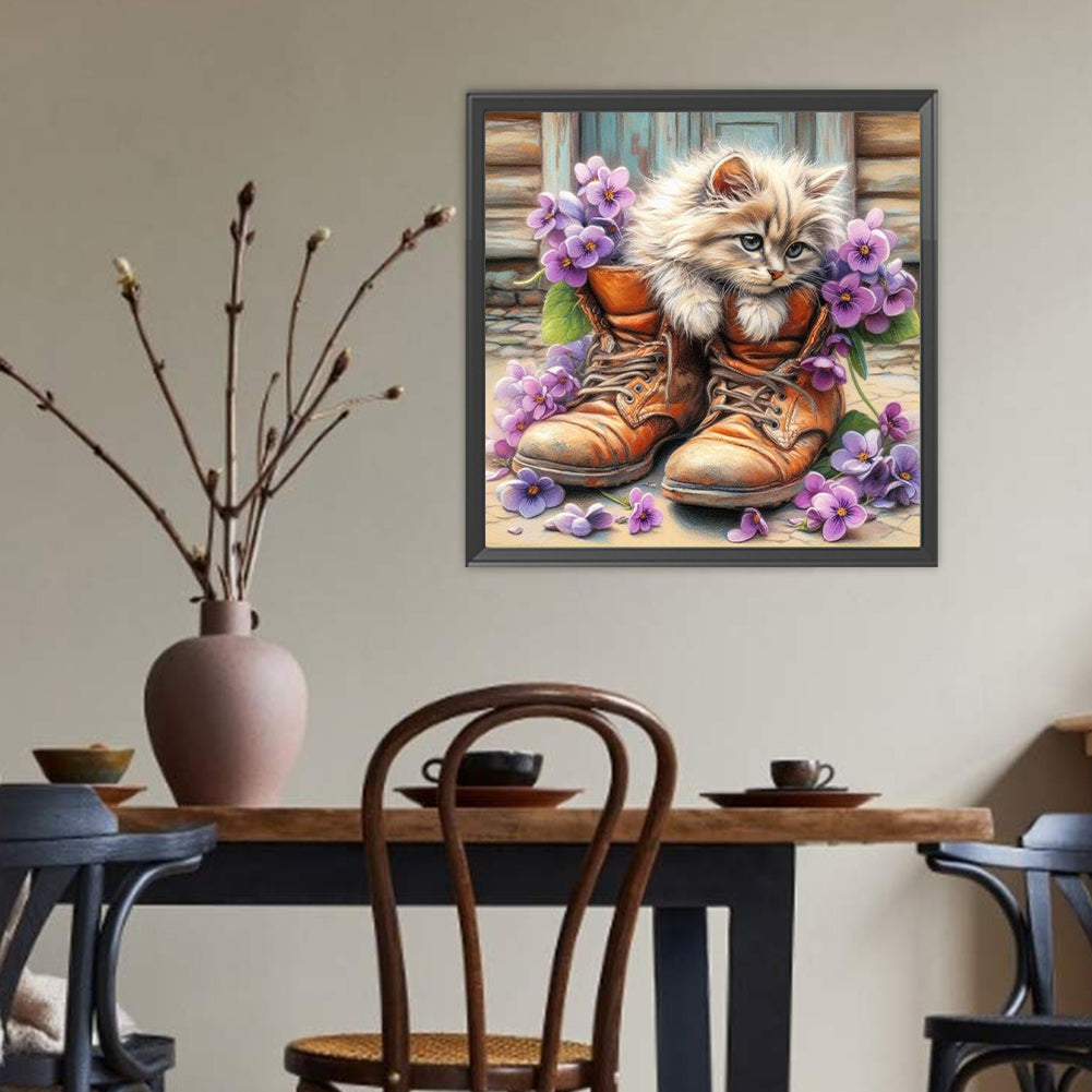 Diamond Painting - Full Round - Purple Cat In Boots (40*40CM)