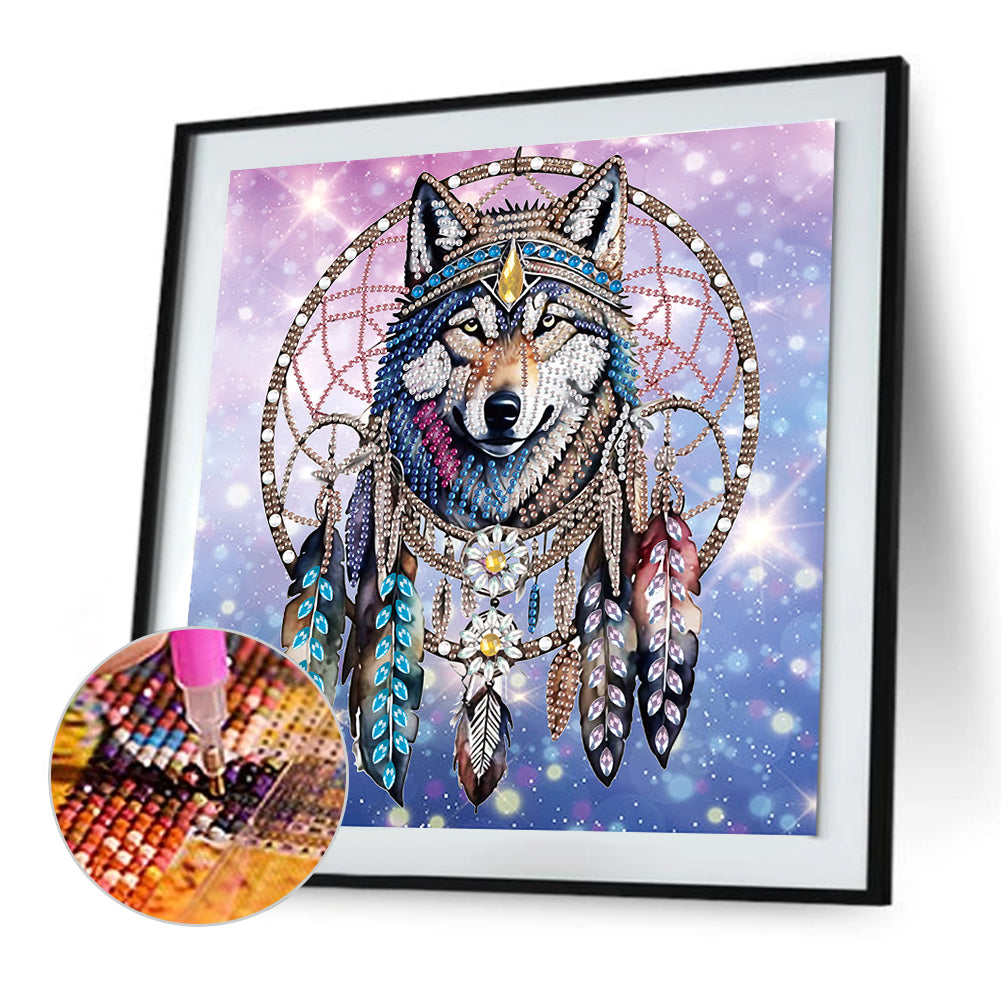 Diamond Painting - Partial Special Shaped - Dream catcher wolf (30*30CM)
