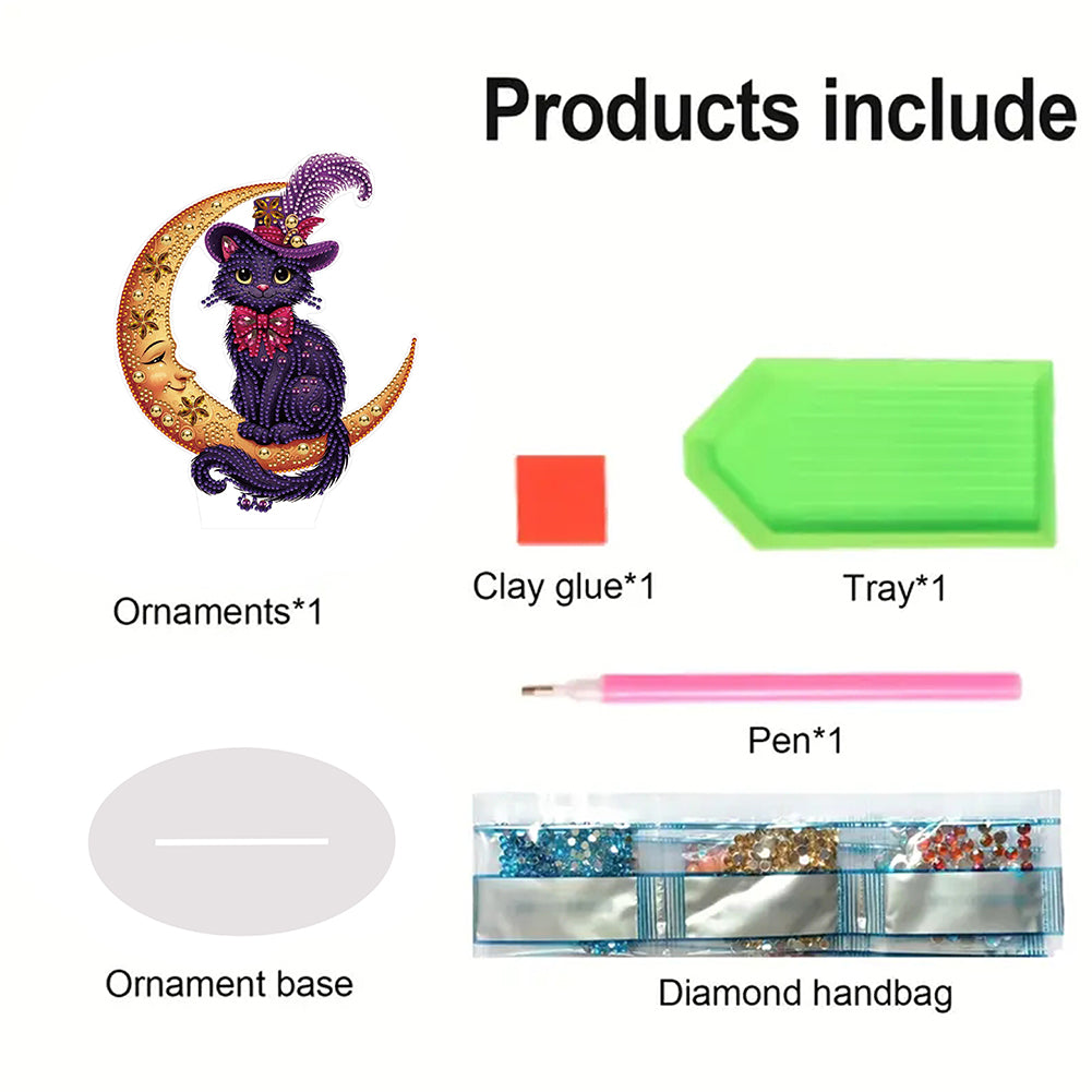Special Shaped Cat on Moon Desktop Diamond Painting for Adult Home Office Decor