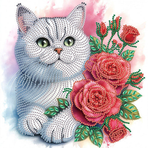 Acrylic Special Shaped Cat Rose DIY Desktop Diamond Painting Art Kits for Home![]()  - Regular price