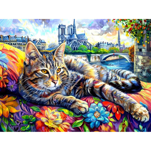 Diamond Painting - Full Round - Fantasy abstract cat city (40*40CM)