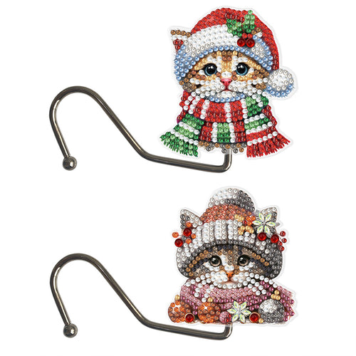 2Pcs Xmas Cat DIY Diamond Painting Countertop Hooks for Home Office Decor