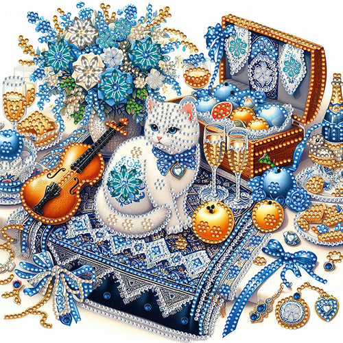 Diamond Painting - Partial Special Shaped - White cat gift (30*30CM)