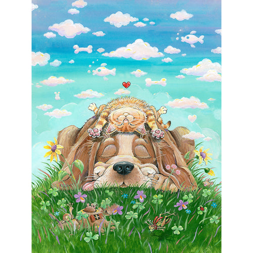 Diamond Painting - Full Round - Puppy and cat sleeping on the grass (30*40CM)