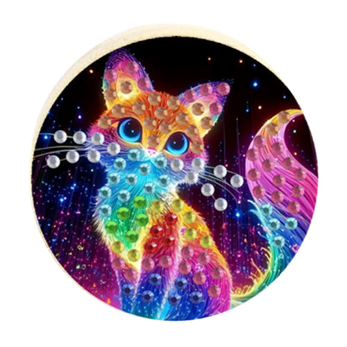 6pcs Cat DIY Diamond Painting Coasters Kits with Holder for Adult Beginner