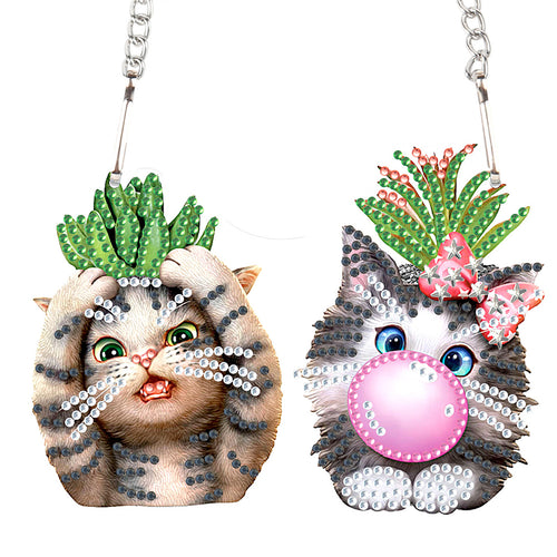 Acrylic Cactus and Cat Single-Sided 5D DIY Diamond Painting Hanging Pendant