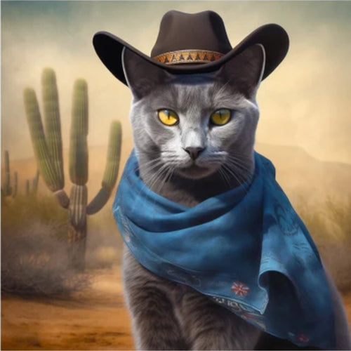 Diamond Painting - Full Round - Desert cool cowboy long haired cat (30*30CM)