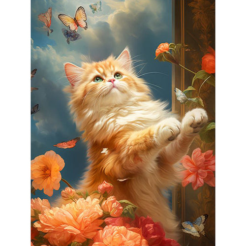 Diamond Painting - Full Round - cat fluttering butterfly (30*40CM)